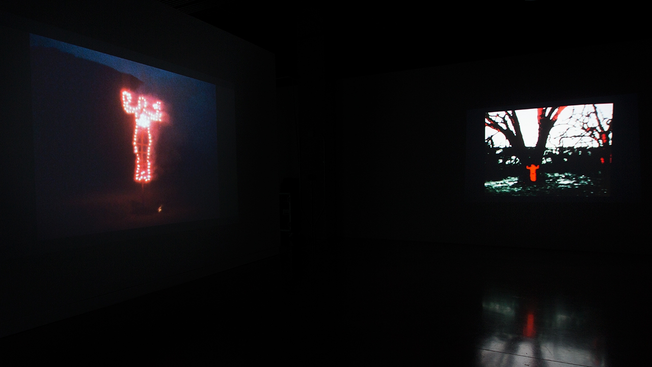 Vista de la exhibición Covered in time and history: The films of Ana Mendieta en Katherine E. Nash Gallery. Foto: Amber White. Cortesía Katherine E. Nash Gallery.