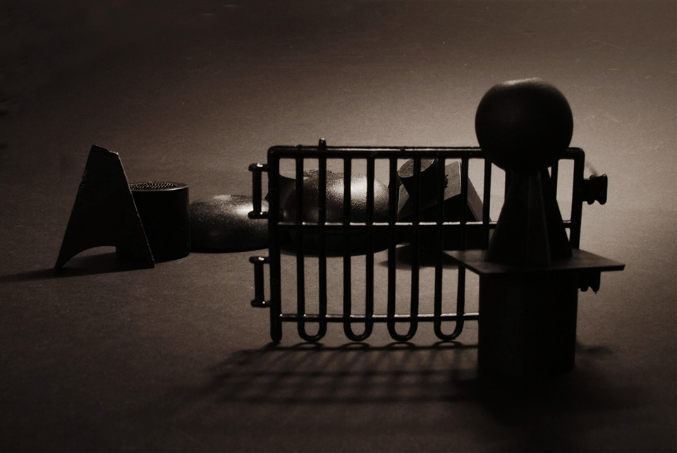 La forma de los objetos-referentes que Triana sitúa en cada escena fotografiada, el número de éstos, las relaciones espaciales entre los mismos tanto como la manera específica en que son iluminados, confieren a cada imagen la cualidad de representación de una situación o suerte de mini-drama.