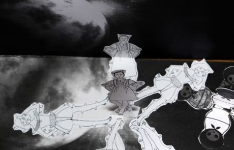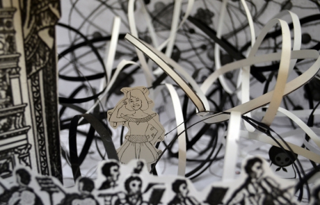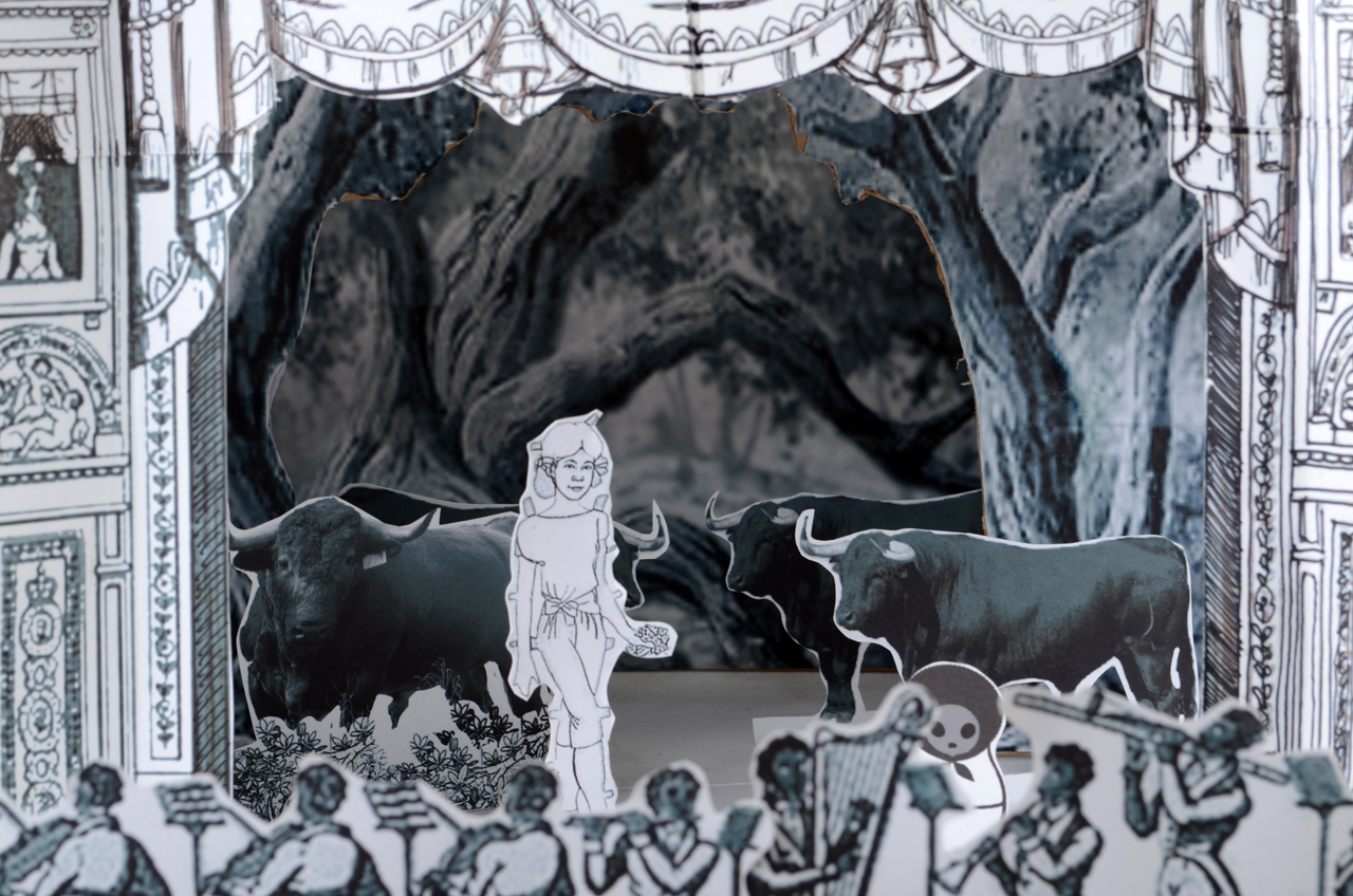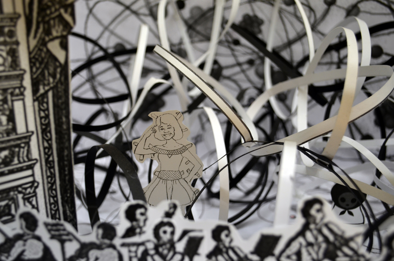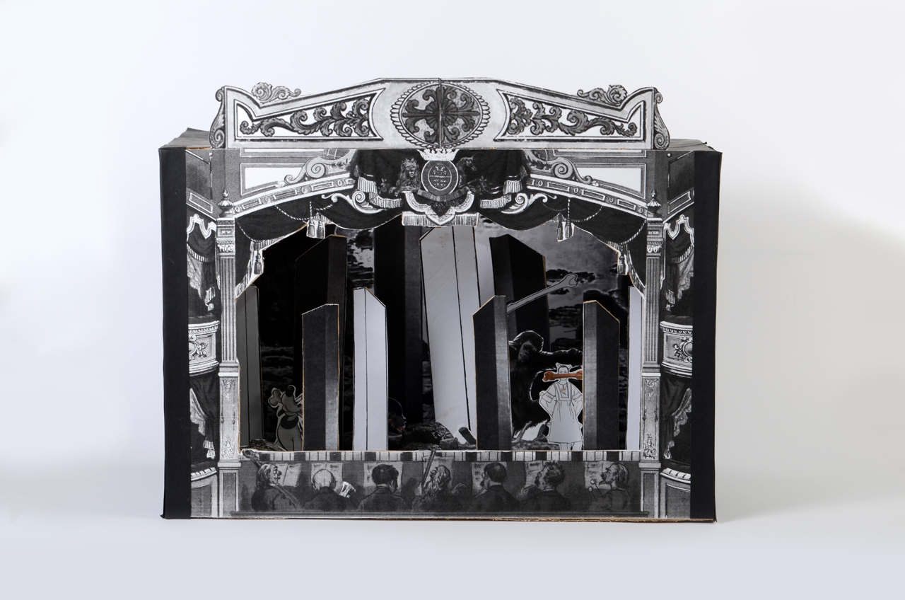 DECLARACIÓN DE PROYECTO. Yo creo que en mi obra lo que es visible es lo que uso como invitación para adentrarse en mis propuestas finales. Lo que subyace debajo solo puede ser entendido a través de la protoconversación. Hay guiños y esquemas muy reconocibles, casi primarios, al comienzo de la lectura de mis obras, pero luego hay giros complejos que necesitan del manejo de datos, incluso, histórico-culturales propios de mi país para llegar hasta el final del contenido…La serie Teatrillos de papel: “La medida de uno mismo” refleja cómo construye uno la realidad y cómo funciona ante los juegos de poder, cómo funcionan estos poderes y los que pueden y cómo estos trazan las realidades a las que nos someten.