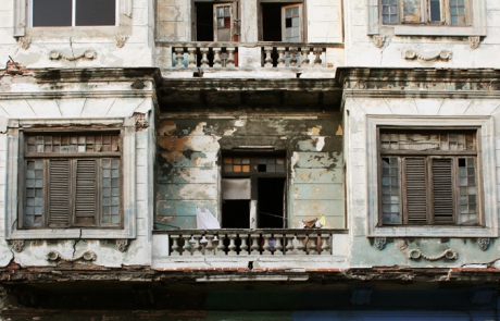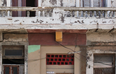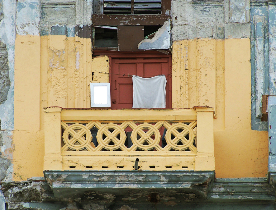 DECLARACIÓN DE PROYECTO. El remiendo se ha convertido en una práctica habitual en Cuba, en un medio que se emplea para dar soluciones a cuestiones relacionadas con objetos listos para ser reemplazadas. Es una manera de sacarle provecho, de exprimir al máximo lo que no da para más; es la estética de lo inestable que trata de resolver el momento. Las personas han priorizado modificaciones decorativas a sus viviendas, pues no tienen la posibilidad de resolver los problemas constructivos de las mismas. A pesar de que un buen número de edificios en varias zonas se encuentran en mal estado de conservación, muchos de sus habitantes siguen viviendo en ellos y se mantienen preocupados por embellecer su pedacito. Un embellecimiento particular, con los recursos y materiales que aunque no son los idóneos, tratan de cambiar su apariencia con la ilusión de encontrar una mejor. Cubrir el hueco, tapar la suciedad con colores – con los que se tiene a mano- ocultar el error y pretender hacerlo agradable, trae como resultado una visualidad especial, una imagen precaria que se devela como metáfora en su estado natural. El entorno urbano refleja y está condicionado por comportamientos como este, que se formulan como mecanismos de subsistencia que definen una época. Cubiertas de deseos recoge un autoservicio que ha acontecido como fenómeno cultural.