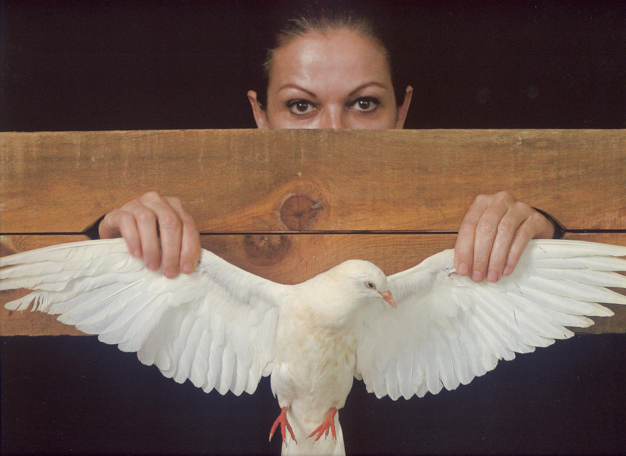 La sala de mi departamento en La Habana sirvió de estudio. Las ventanas abiertas pueden verse en mis ojos. Me encanta la luz disponible, pero tuve que verificar la exposición todo el tiempo para estabilizar la cambiante luz solar del invierno tropical cubano. El fondo era un viejo mantel lleno de agujeros, manchas y quemaduras de cigarrillos que alguna vez perteneció a un famoso Cabaret de La Habana. En diferentes momentos, un pollo, una paloma y una oveja compartieron mi departamento, pero los invitados más ruidosos fueron un cerdo y un gallo que despertaban al vecindario al amanecer. Ciertamente, tuve mucha suerte de encontrar todo lo que necesitaba para crear mis fotografías…He compartido algunos detalles del proceso de creación de las 25 imágenes que componen esta colección. Varias fotografías nunca se han visualizado. Algunas imágenes, aunque concebidas con el mayor respeto, pueden ser consideradas como tabúes éticos por algunos. Tal vez ciertos peligros me puedan aguardar; por lo tanto, “Peligros del alma”.